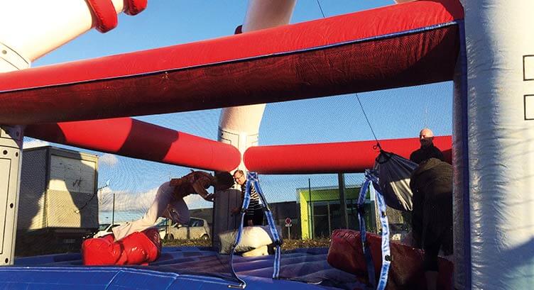 Quatre joueurs s’affrontent : le défi est de rester en équilibre face à cette balle géante !!!
